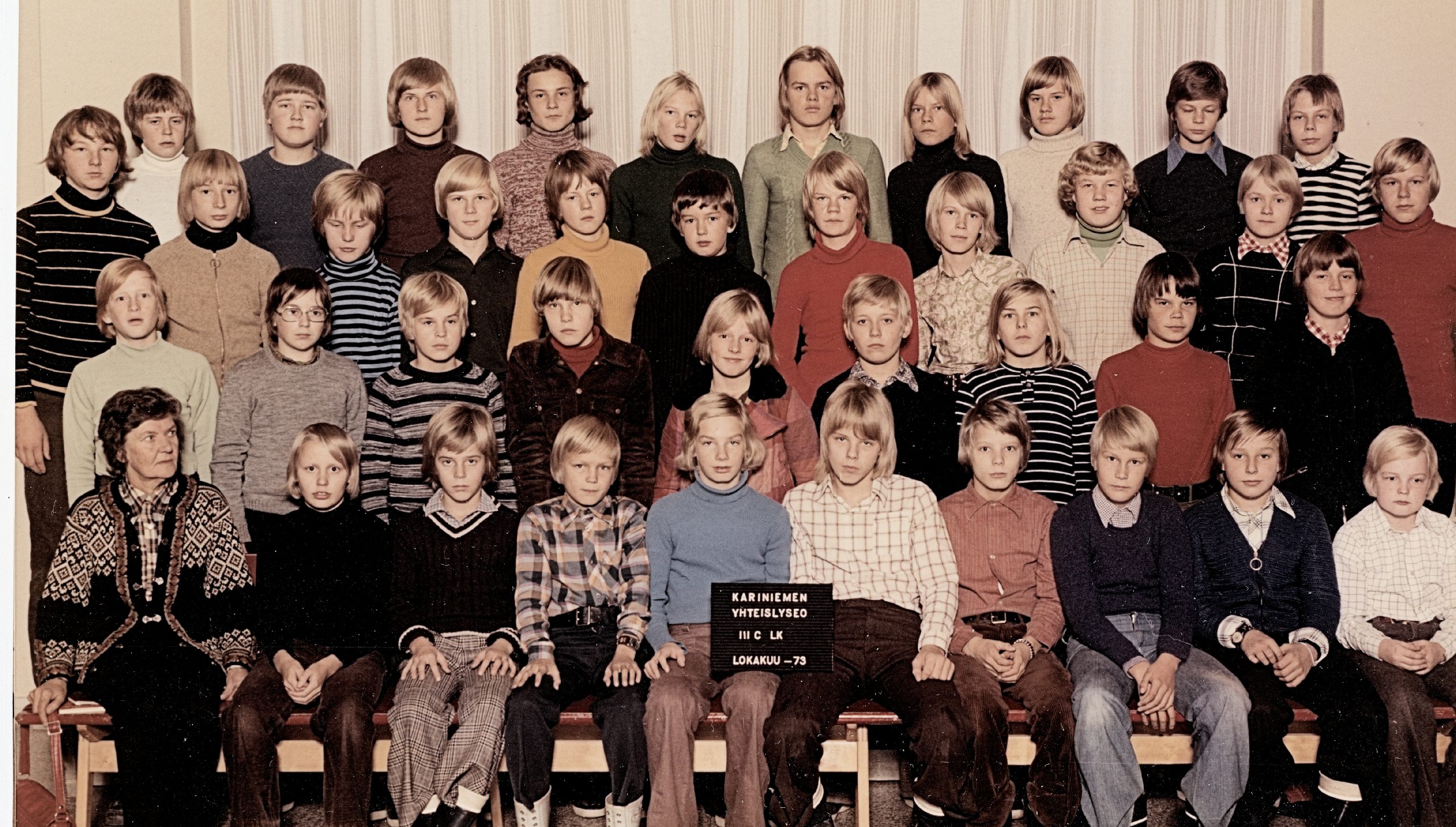 Kariniemen yhteislyseon opettajat lokakuussa 1973.